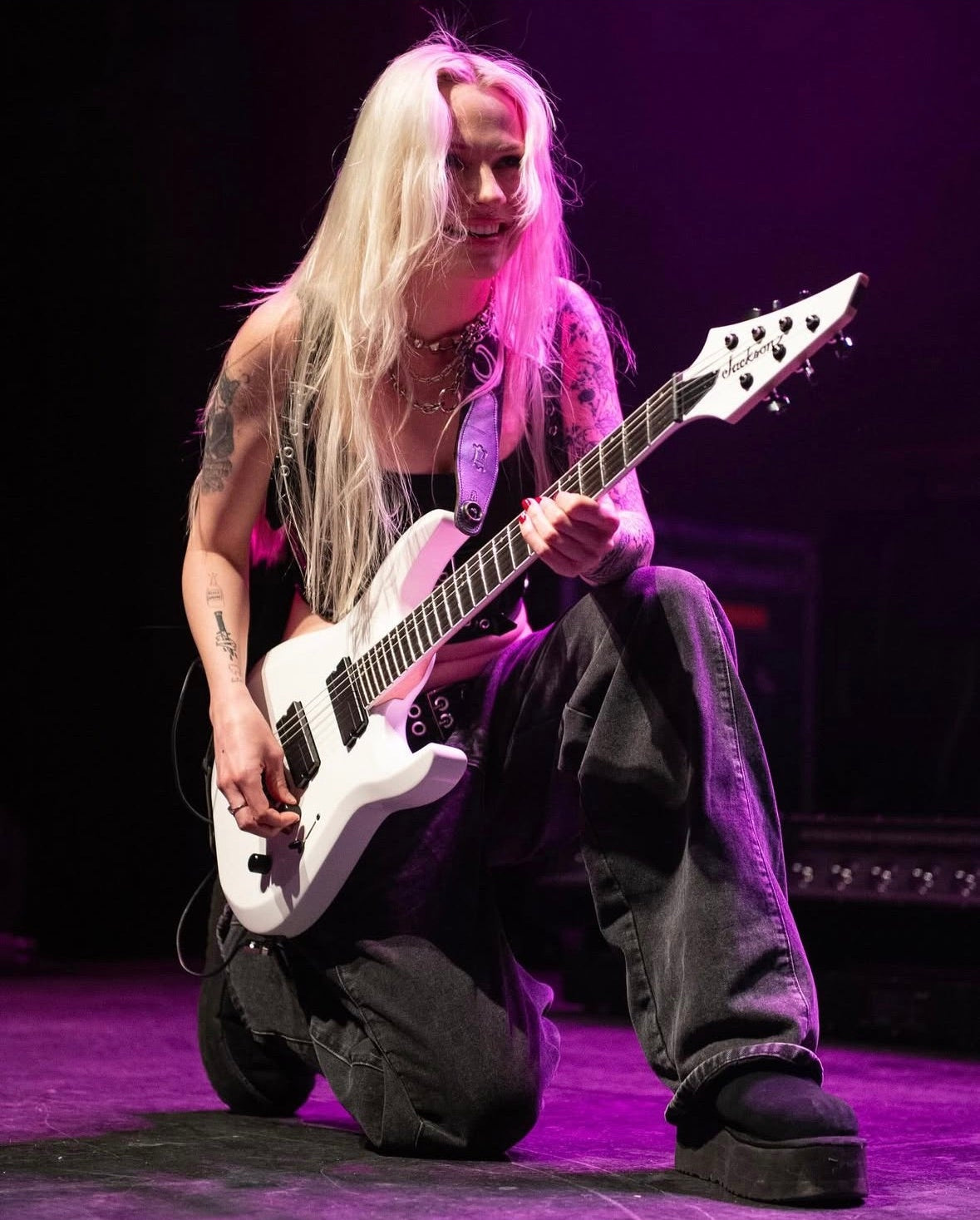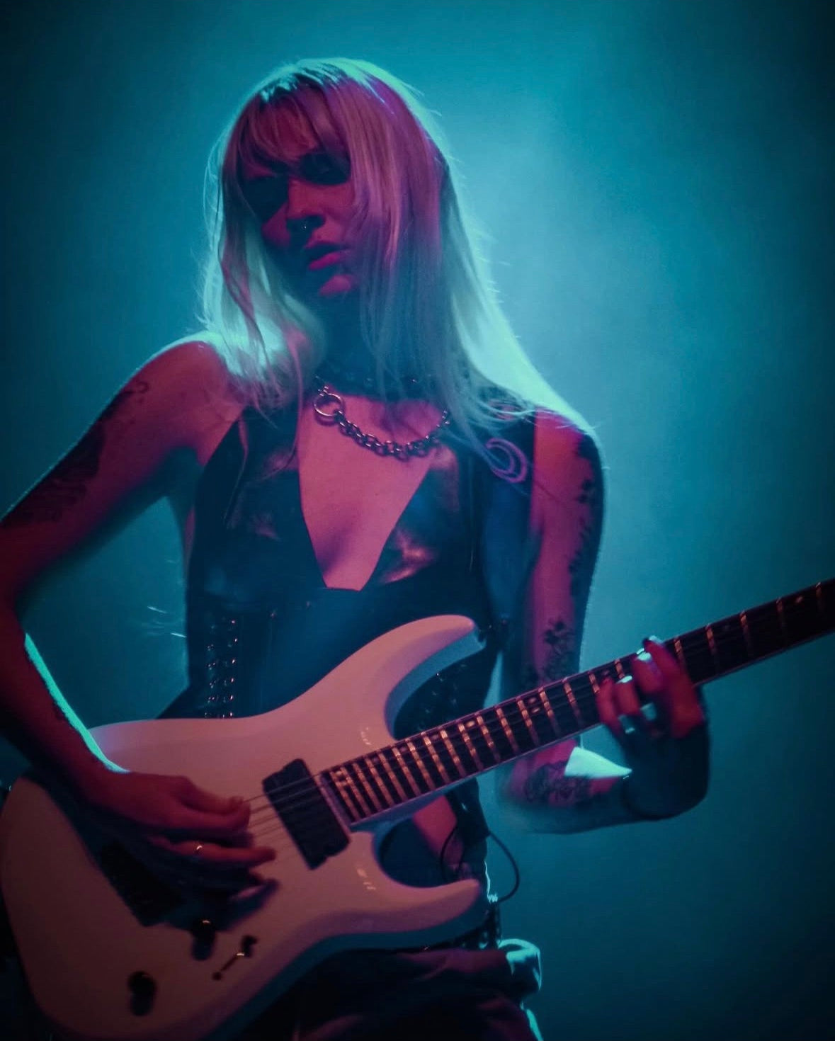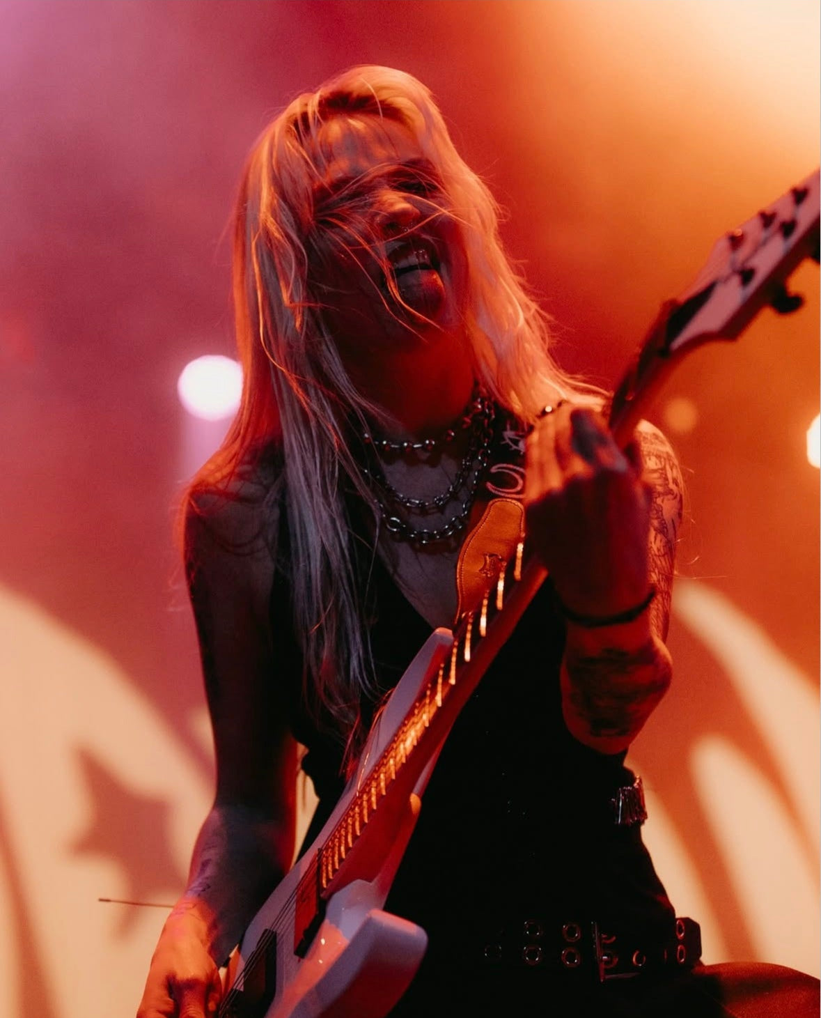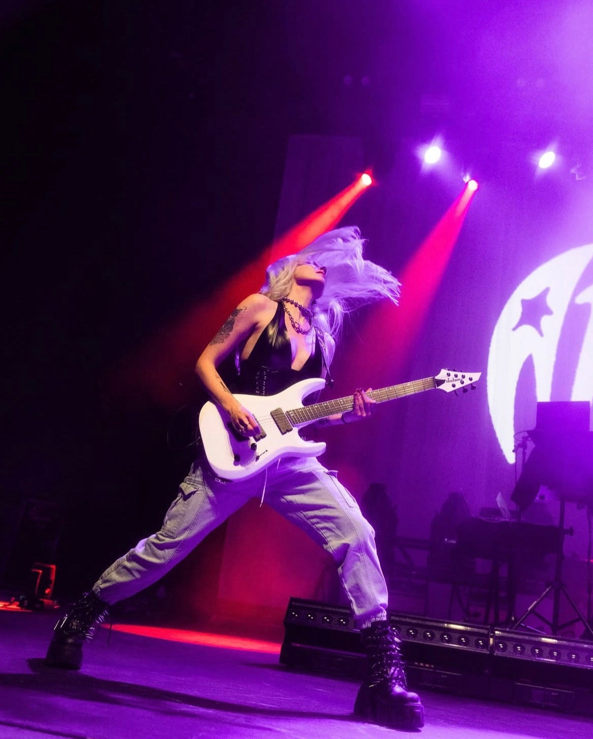 Guitarist Constance Antoinette on stage with Arianna Abdul opening for Nessa Barrett on her Aftercare Tour.