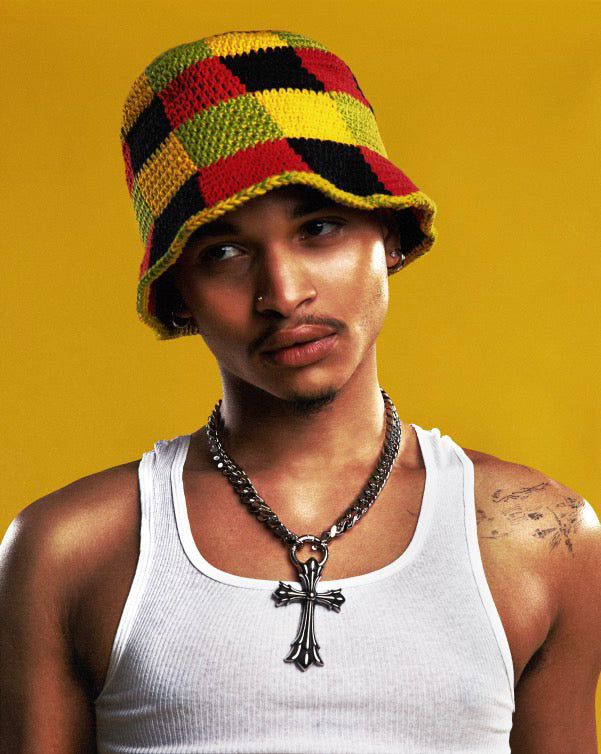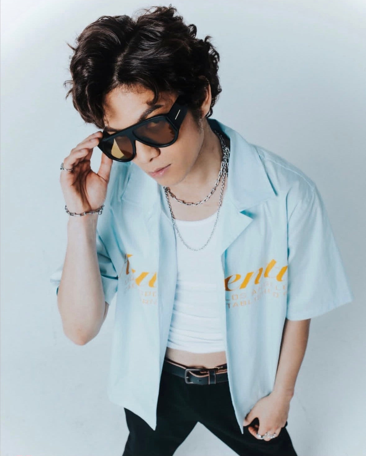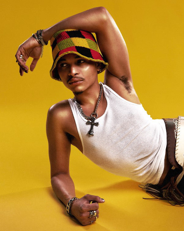 Singer Justin Charles rockin' a layered chain look for his new single "Angel" and for promotional content.
