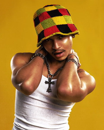 Singer N. John rockin' chain necklaces, bracelets, and rings.
